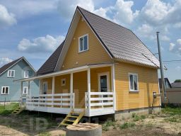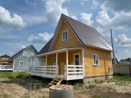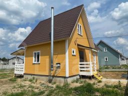 ДОМ двухэтажный 90м2 УЧАСТКОМ 6 соток ОПЛАТА: Цена за наличные. Ипотека + 100тр. Ипотека подходит любая : Семейная 6%, Стандартная , ИТ ипотека 6% , военная. СЕМЕЙНАЯ 6%- первоначальный взнос от 20.1%. Так же - ХЕРСОНСКИЙ сертификат, Военная ипотека и сертификат, ОПЕКА, Материнский капитал. Шикарный ДОМ 90м2 с УЧАСТКОМ 6 соток,д. Цибино, Сухой участок, ЖД Радуга в пешей доступности 10 минут. Консультирую по телефону- Бесплатно. В отличие от конкурентов - мы не навязываем Вам ненужные услуги и не пользуюсь вашей неосведомлённостью! Мы работаем на репутацию! Конструктив Дома: - 1-й этаж: 1 комната - 13.5м2, кухня-гостиная- 17м2 , санузел под ключ 6,5м2 (унитаз, раковина, ванна +выводы под стиральную машину. Гардеробная. - 2-ой этаж: 2 комнаты: 12.5м2/11.5м2. холл- 3,5м2. Коммуникации под ключ, заведены в дом, разведены по местам потребления ! Участок с забором, распашные ворота, калитка, парковка и плитка до дома. Современный дом,полностью готовый для круглогодичного проживания. О ДОМЕ: - Фундамент ленточный армированный ростверк. - Материал строительства- Каркасный. Облицован- доска имитация бруса. - Перекрытие- каркасное. - Отопление гибридный котел Теплодар с возможностью отапливать дом электричеством и твердым топливом (дрова, уголь, брикеты и прочее). - Электричество 15 кВт, 3 фазы. - Водоснабжение -Скважина с насосной станцией. - Канализация - септик переливной 2 колодца по 2 кольца каждый, чистка 1,5 раз в год, объём 2,5 м3 . (возможно увеличить). - Кровля- металлочерепица. - Окна пластиковые с двухкамерными стеклопакеты. - Стены первый этаж каркас 200 мм х 40мм, второй этаж каркас с утеплением 200мм изовер, перекрытия деревянные, мансарда утепления 200мм каменная вата. Очень теплый дом. В пешей доступности : школа,детский сад, школа рядом, поликлиника , магазины, строительный рынок. На личном автомобиле можно добраться до МКАД за 55 мин. Компания Твой дом строим и продаем Каркасные дома от 80 до 157 м2. Покраска входит в ст