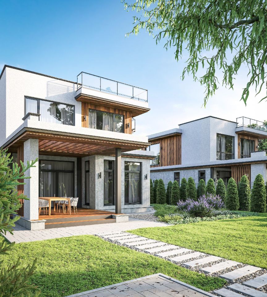 Современный кирпичный коттедж в закрытом жилом комплексе Новое Бакеево Современный квартал. Это уединенное место среди леса в 3 км от Зеленограда. Вдоль посёлка протекает река, на протяжении которой обустроена прогулочная зона, детские и спортивные площадки. В инфраструктуру входит: магазин, кафе, фитнес-клуб, детский сад, бесплатный транспорт до Зеленограда. Материалы строительства: Каркас: монолит Стены: кирпич Утеплитель: минеральная вата Отделка фасада: вентилируемый фасад из hpl мокрый фасад Лестница с 1 на 2 этаж железобетонная внутри дома и винтовая снаружи.