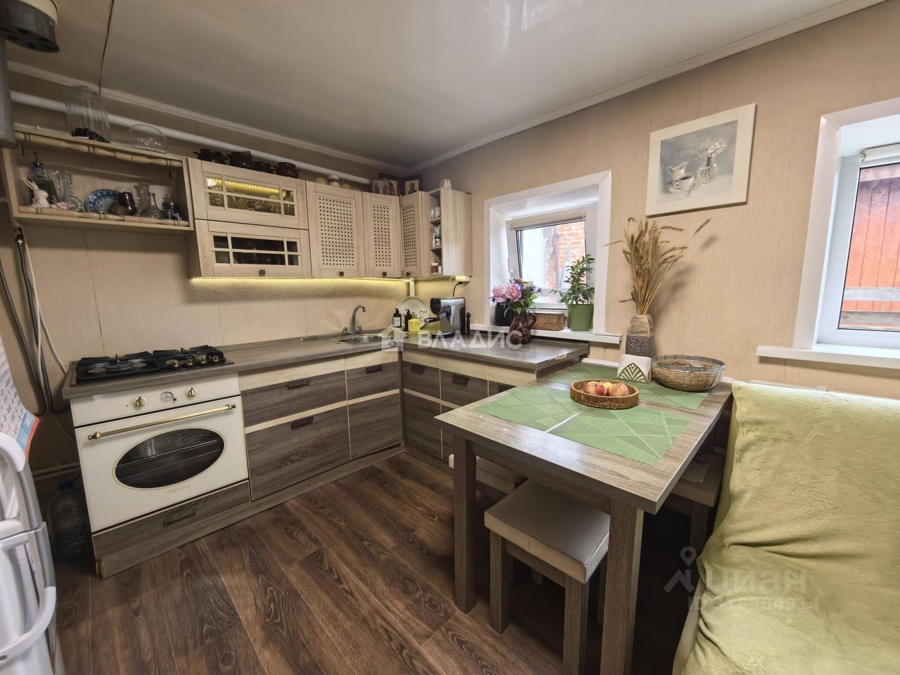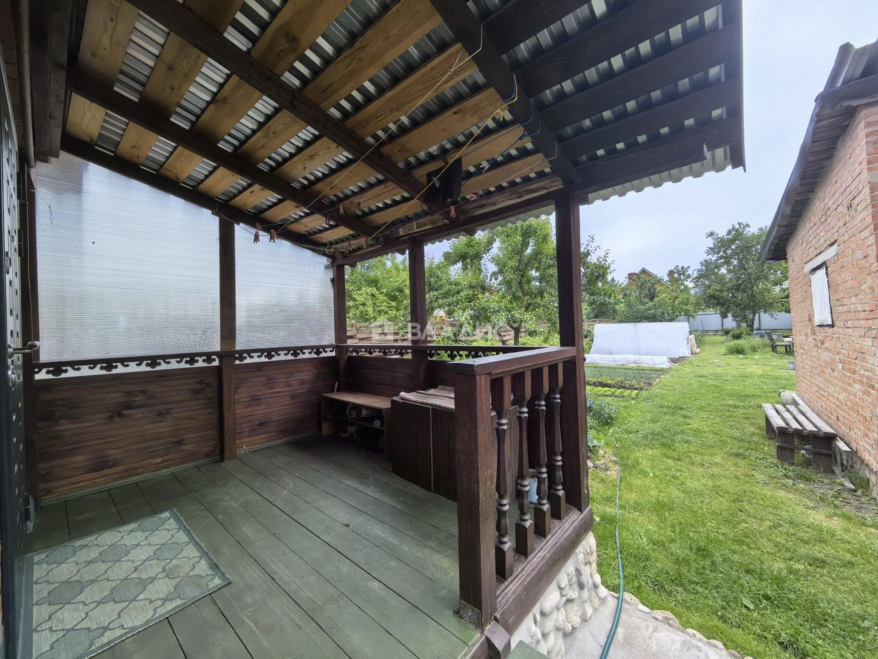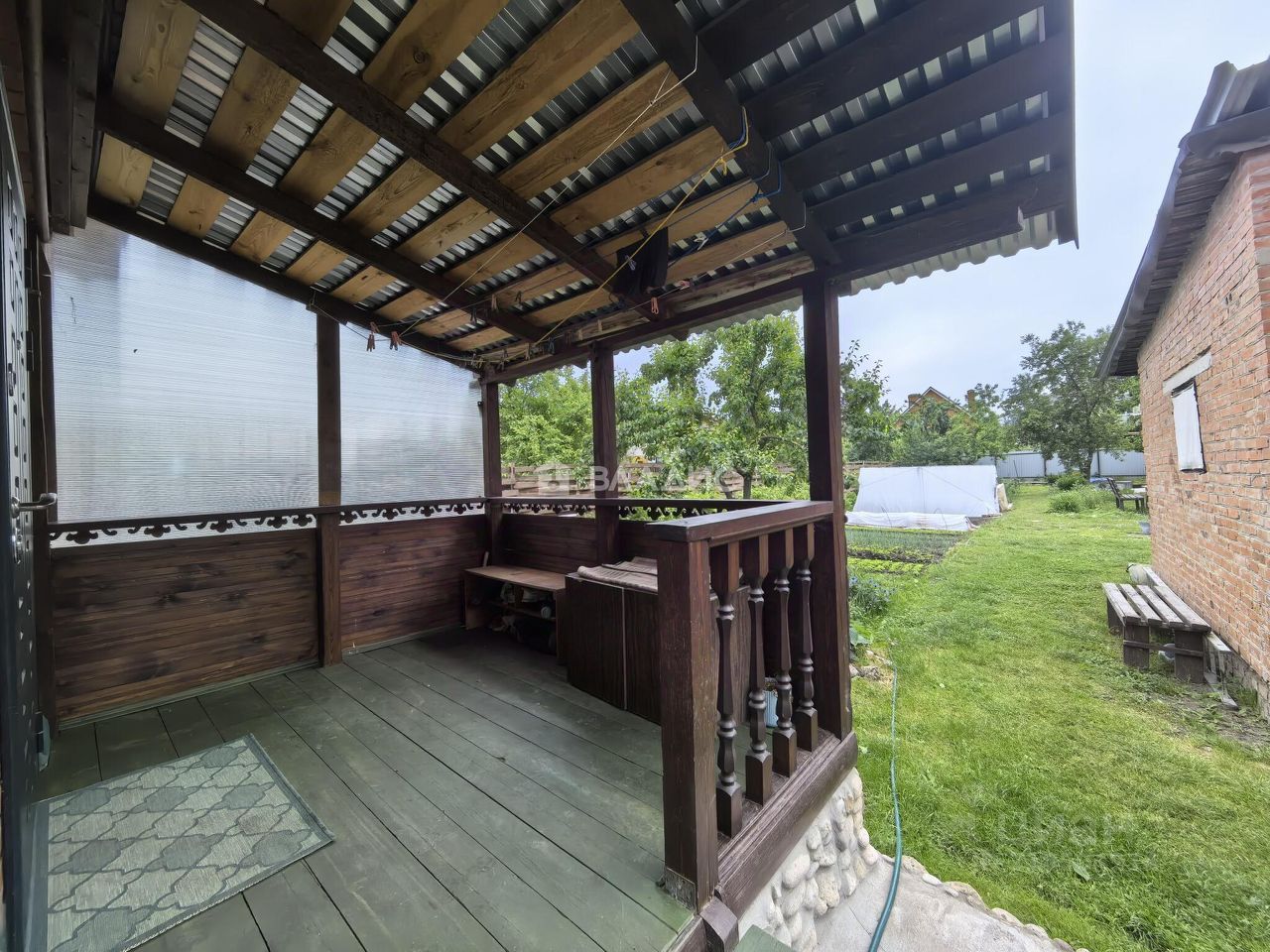 Дом построен частично из бревна и кирпича, имеет общую площадь 40 кв. м.