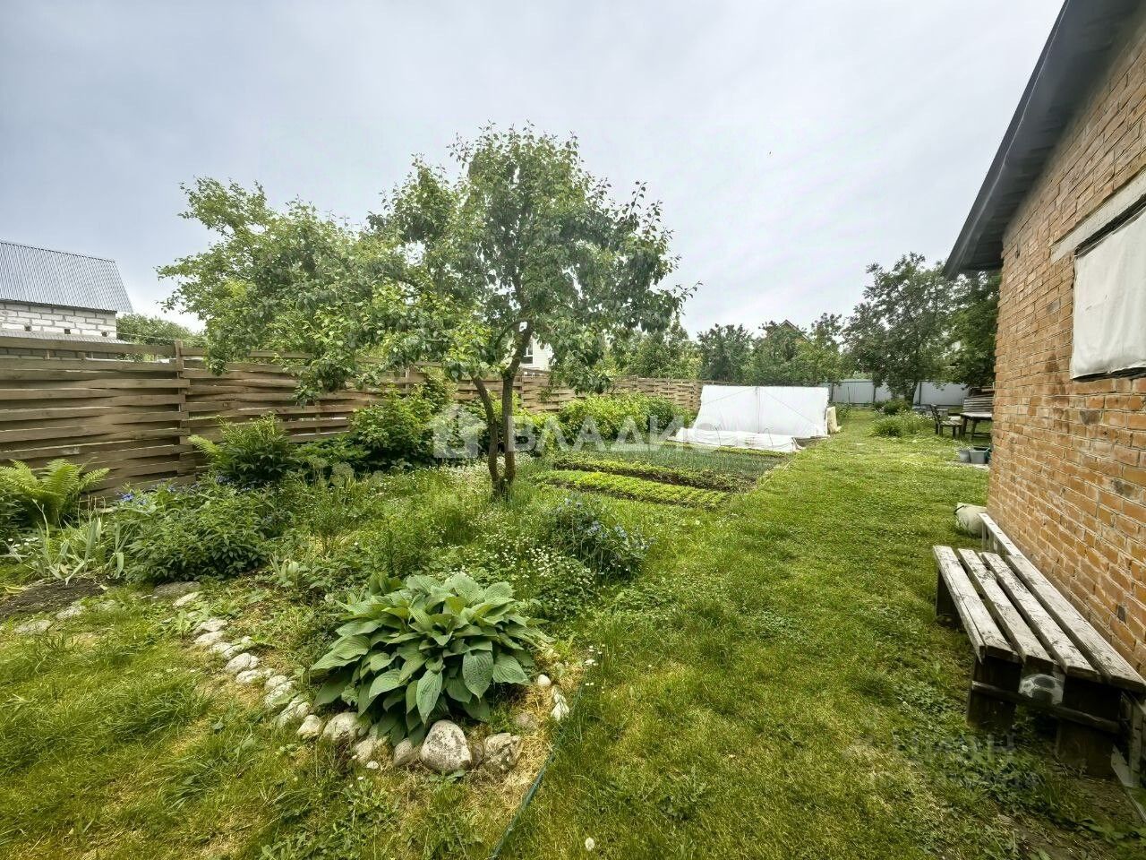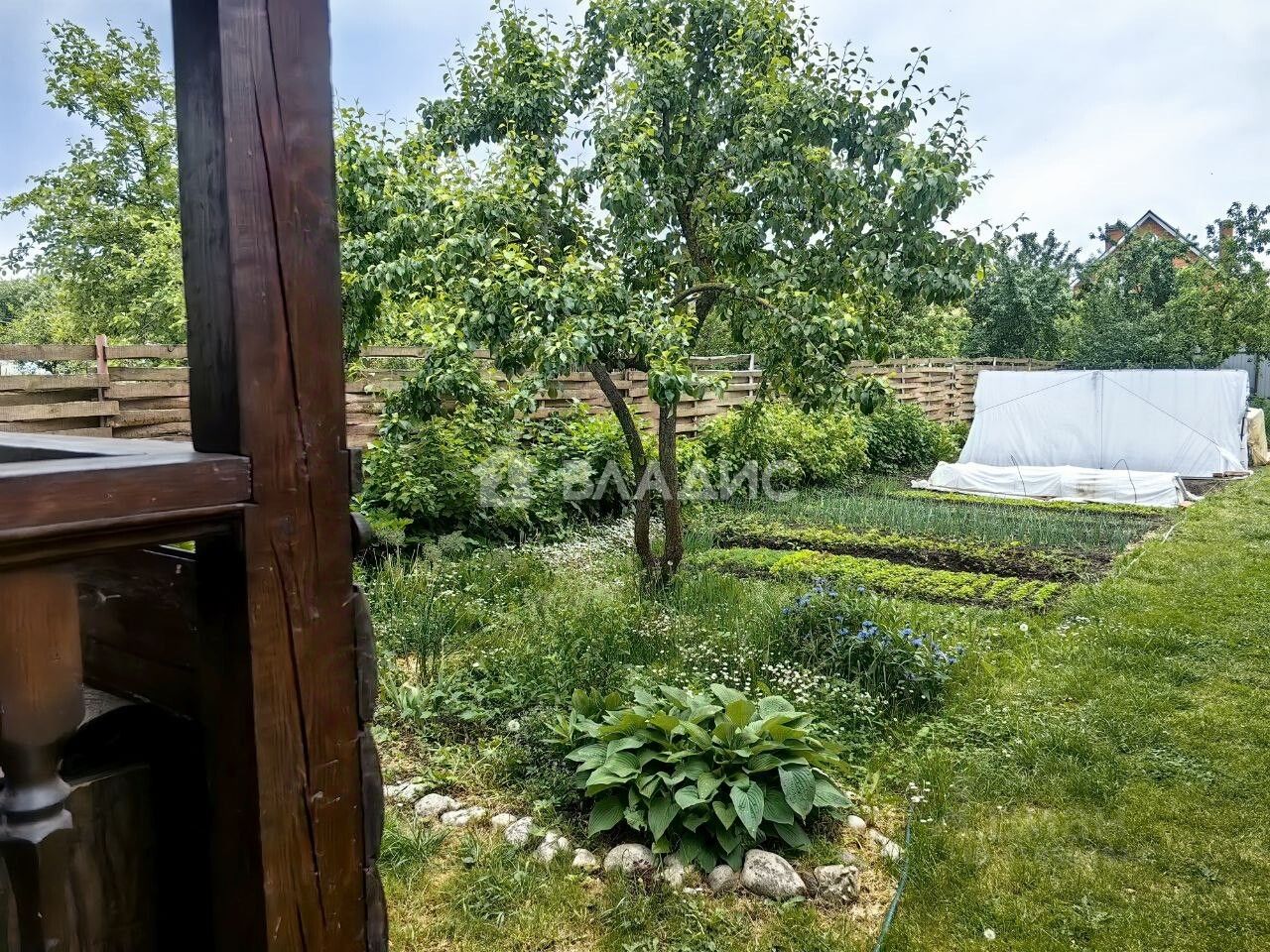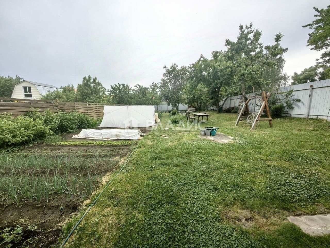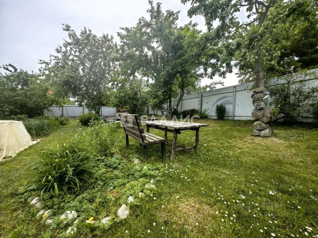 Участок площадью 7 соток благоустроен и включает гараж. На участке растут плодовые деревья и кустарники.