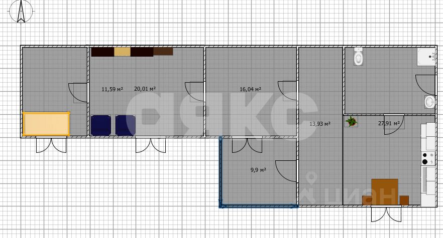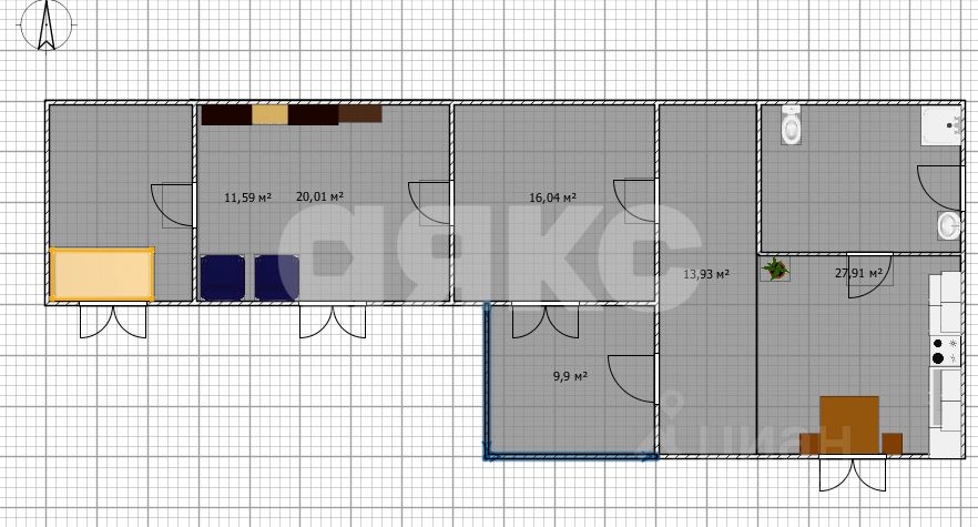 Общая площадь45 м2