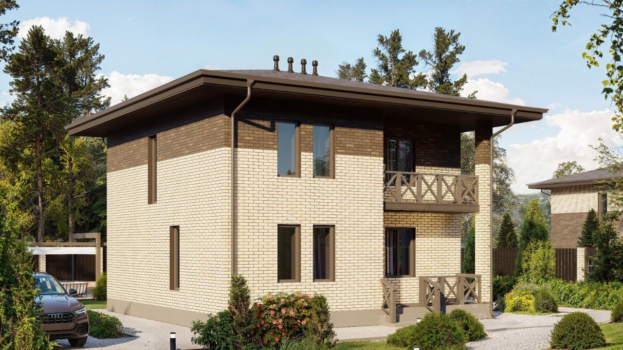 - Фундамент: свайно-ростверковый с утепленной монолитной плитой. - Кровля: мягкая черепица Шинглас от ТехноНИКОЛЬ с четырехслойным утеплением. - Отопление: теплые полы и панельные радиаторы ROMMER.