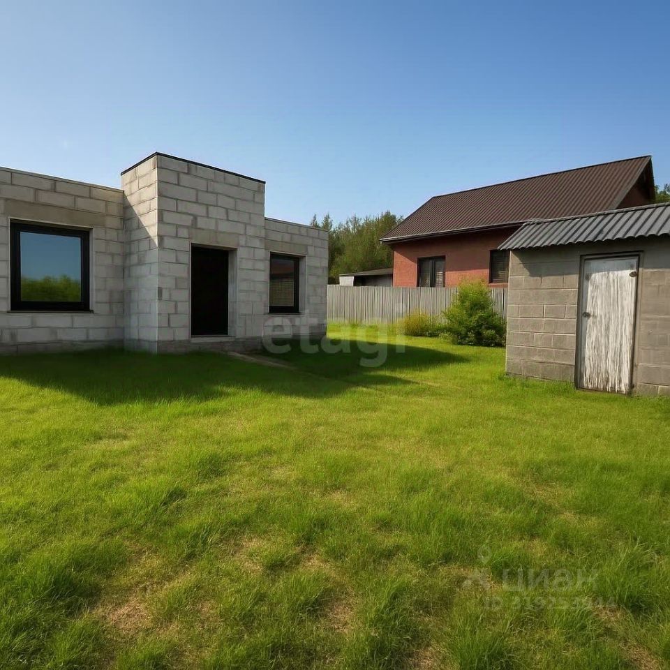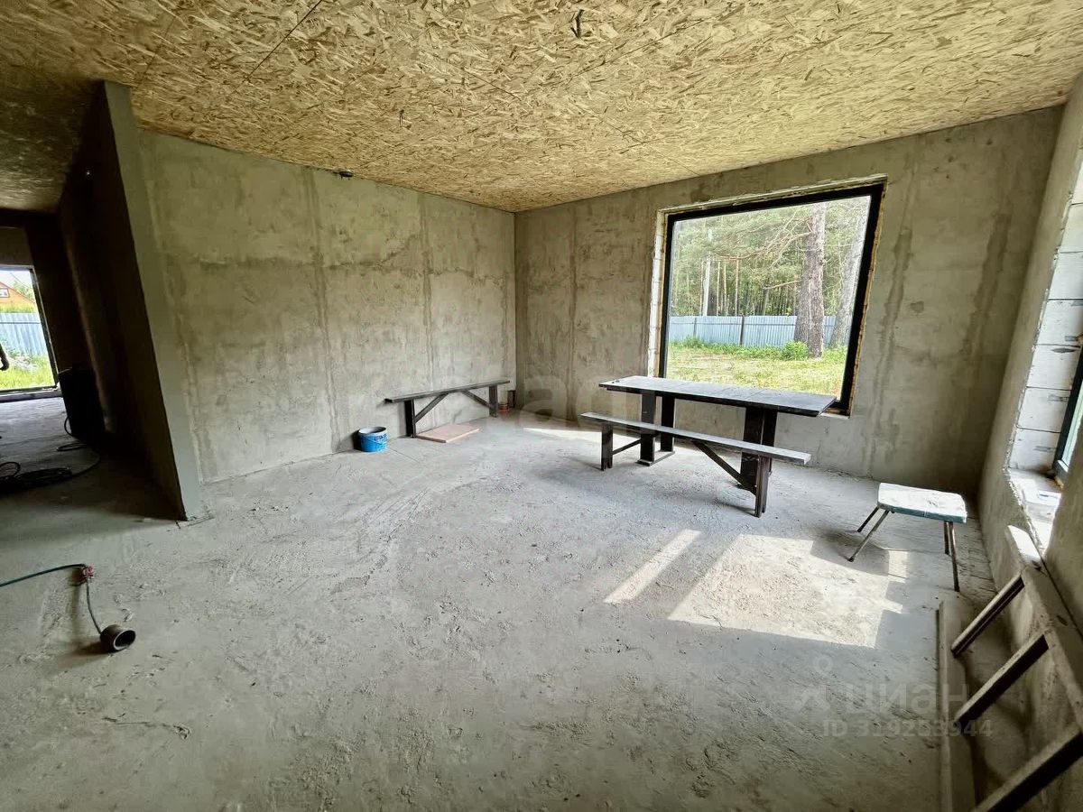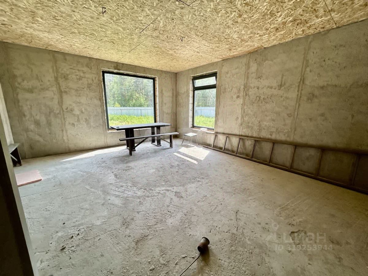 Дом построен по индивидуальному проекту из газо- и пеноблоков на монолитной бетонной плите, что обеспечивает надежность и долговечность конструкции. Крыша выполнена с контр-уклоном, исключающим скопление снега и подтеки у входной зоны. Внутренние стены выровнены, начата разводка электрики. Планировка включает три отдельные комнаты, причем из главной спальни есть выход на улицу. Просторная кухня-гостиная с панорамными окнами выходит в сторону леса, наполняя помещение естественным светом. Санузел совмещенный, котельная выделена в отдельное помещение, а широкий коридор добавляет ощущение простора.