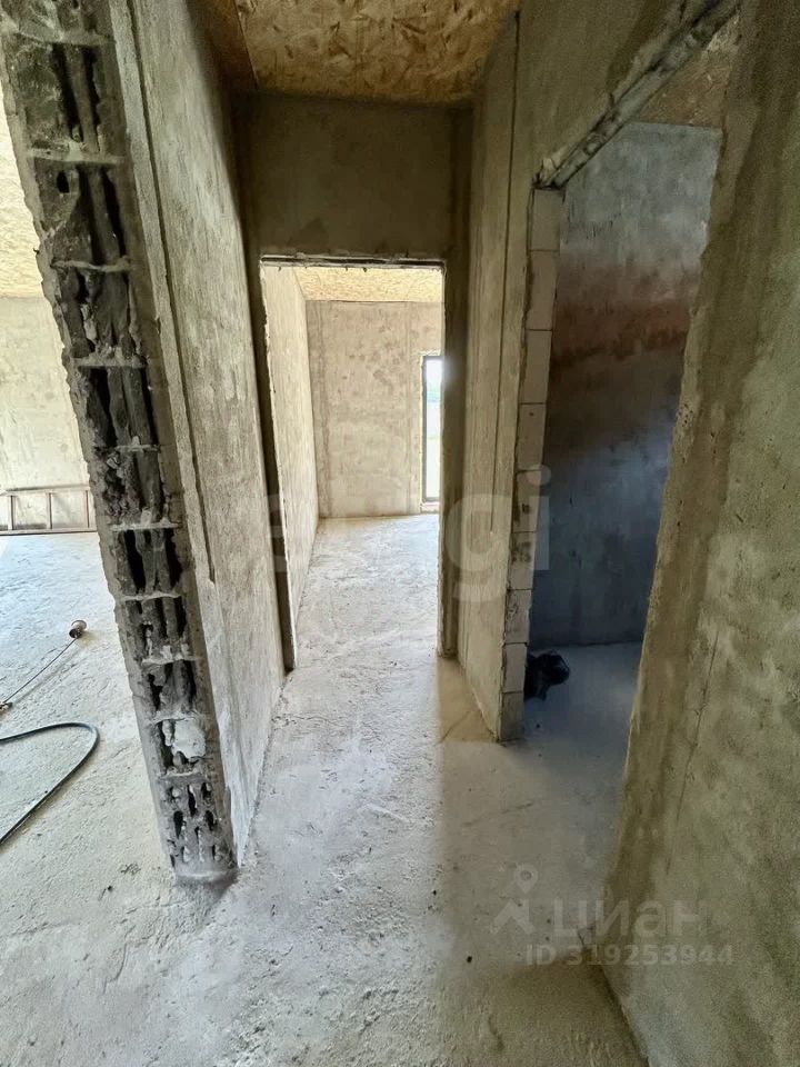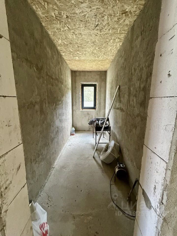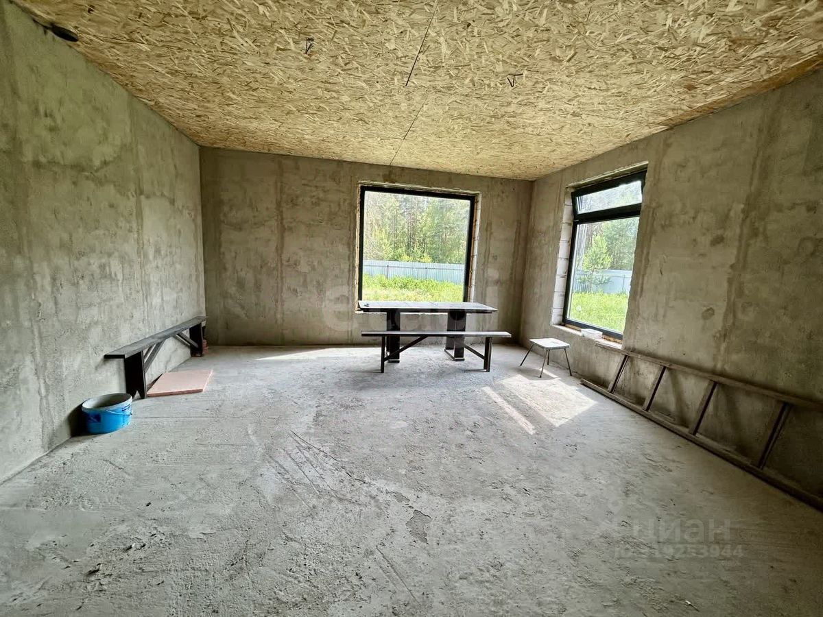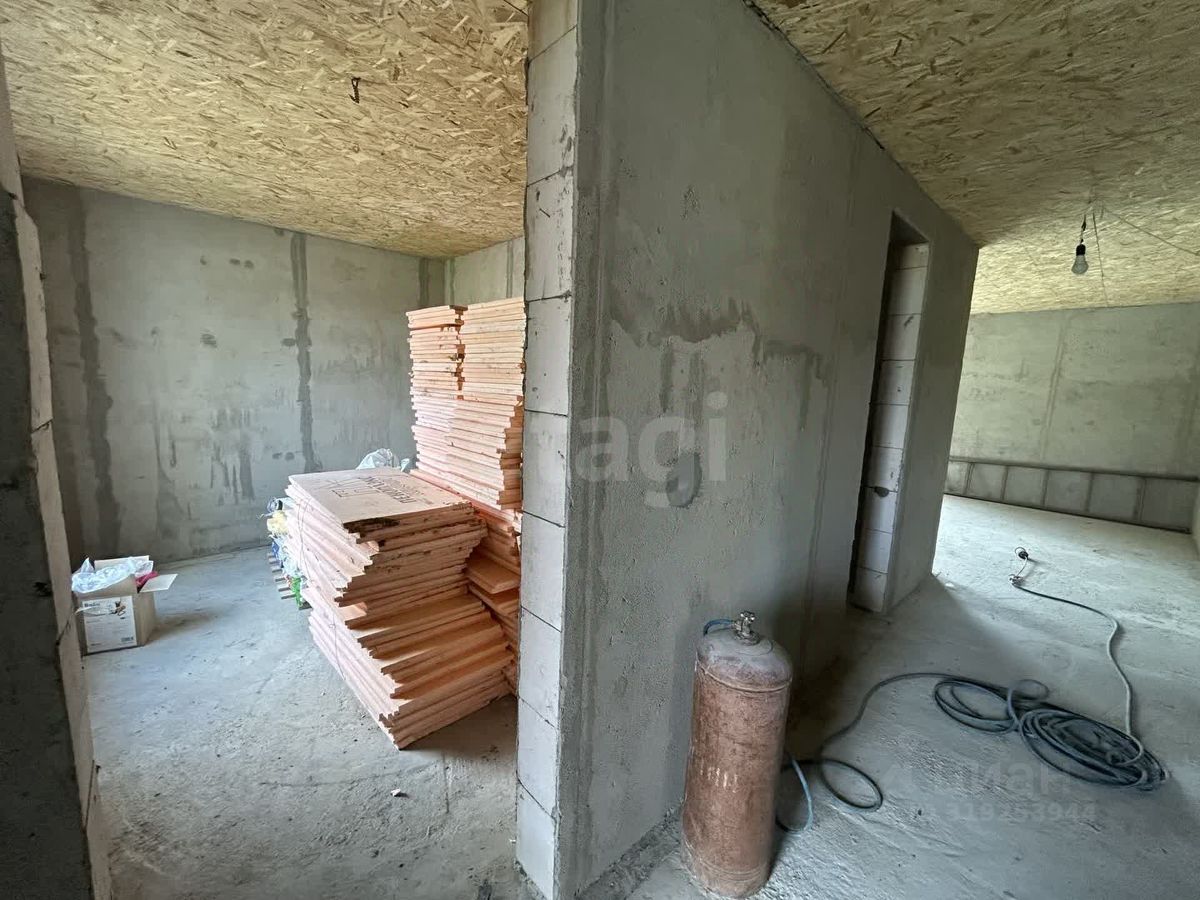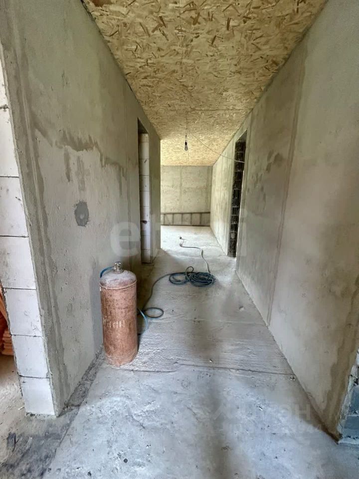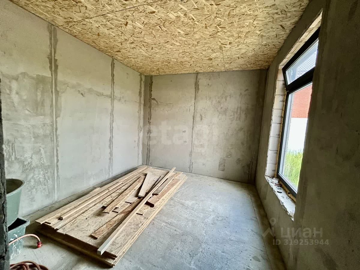 Дом построен по индивидуальному проекту из газо- и пеноблоков на монолитной бетонной плите, что обеспечивает надежность и долговечность конструкции. Крыша выполнена с контр-уклоном, исключающим скопление снега и подтеки у входной зоны. Внутренние стены выровнены, начата разводка электрики. Планировка включает три отдельные комнаты, причем из главной спальни есть выход на улицу.
