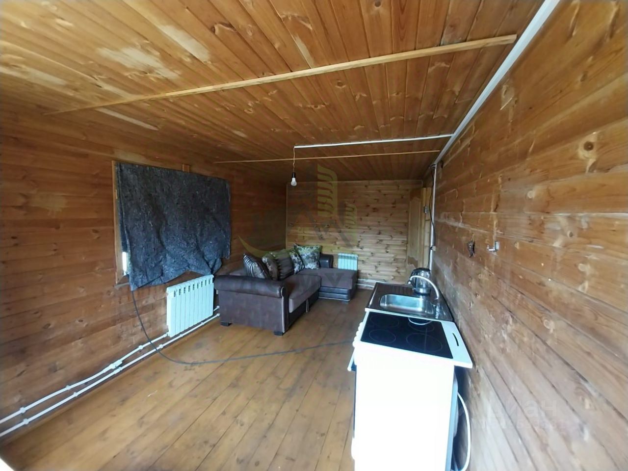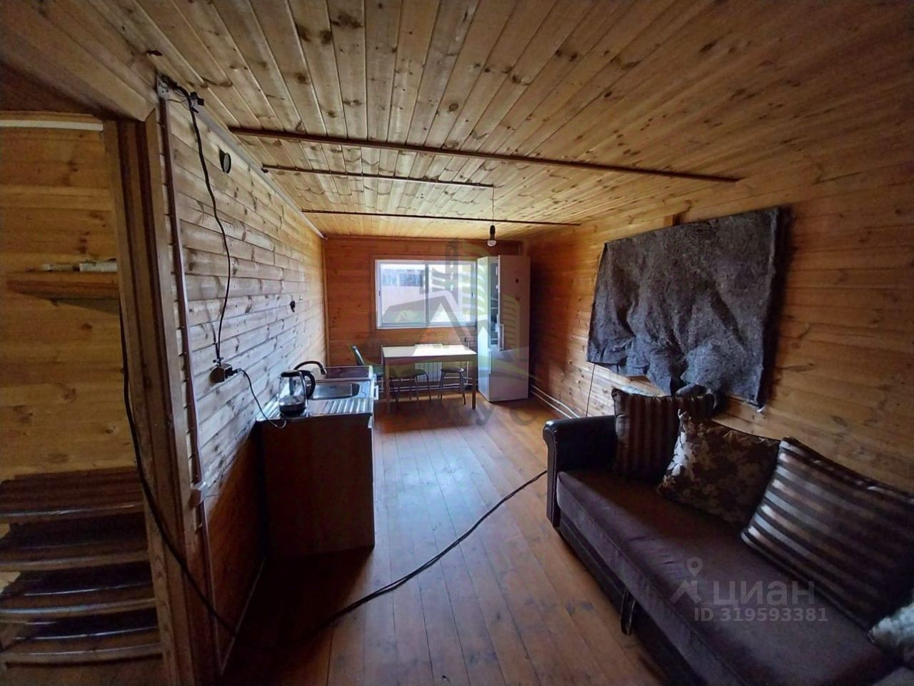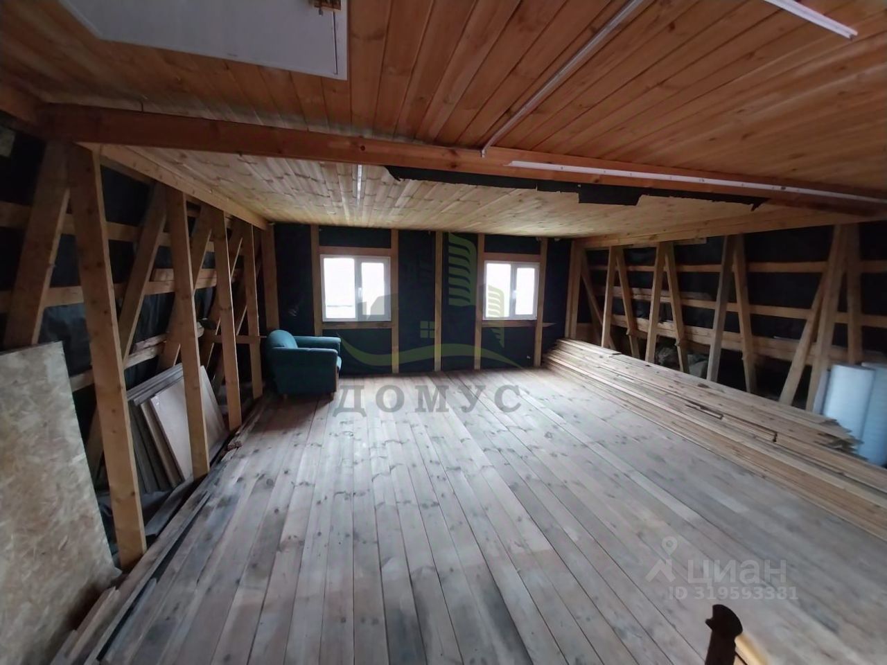 На первом этаже: комната 20кв.м., кухня-гостиная: 18кв.м., санузел. На втором этаже: большая комната 30кв.м., требуется утепление стен.