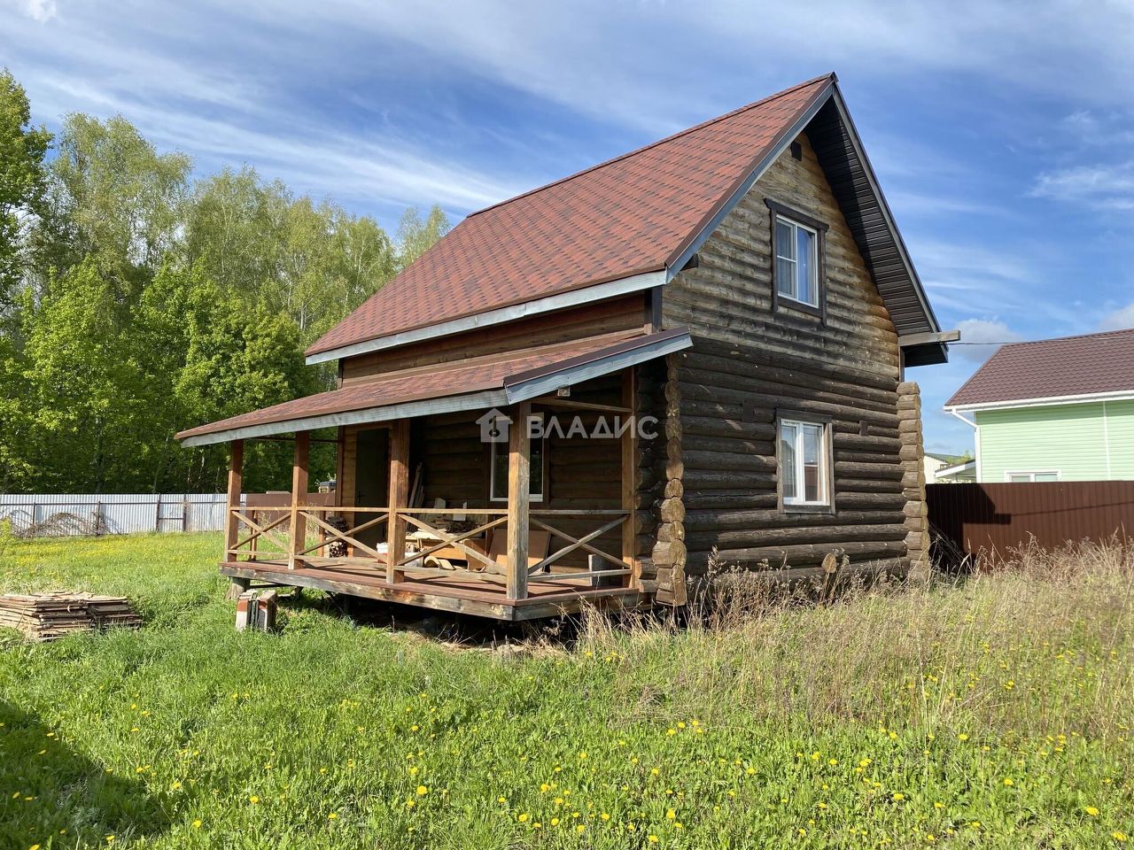 -Уютный бревенчатый дом возле леса.