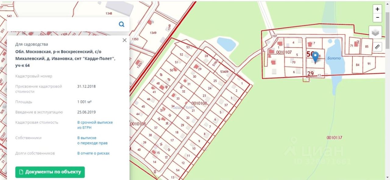 Продаётся участок 64 ровный, сухой- стоит на возвышенности от болота, в окружении соседей, которые живут на ПМЖ, правильной прямоугольной формы 10 соток с правом строительства жилого дома с правом регистрации проживания в нем. Сейчас на участке стоит дом (недостроенный), который можно снести или использовать как подсобное помещение- не зарегистрирован, электричество и магистральный газ по границе участка. Круглогодичный подъезд. Соседи живут на ПМЖ. Удобное транспортное сообщение: недалеко ж/д и автостанция Бронницы Казанского направления. Ближайшее метро Ипподром 20 мин. На машине до МКАД 35 км. Развитая инфраструктура: сетевые супермаркеты, школа, детский сад, больница- всё в ближайшей доступности, рядом лес. Удобный заезд с А107, А113 ЦКАД. Проведено межевание участка.