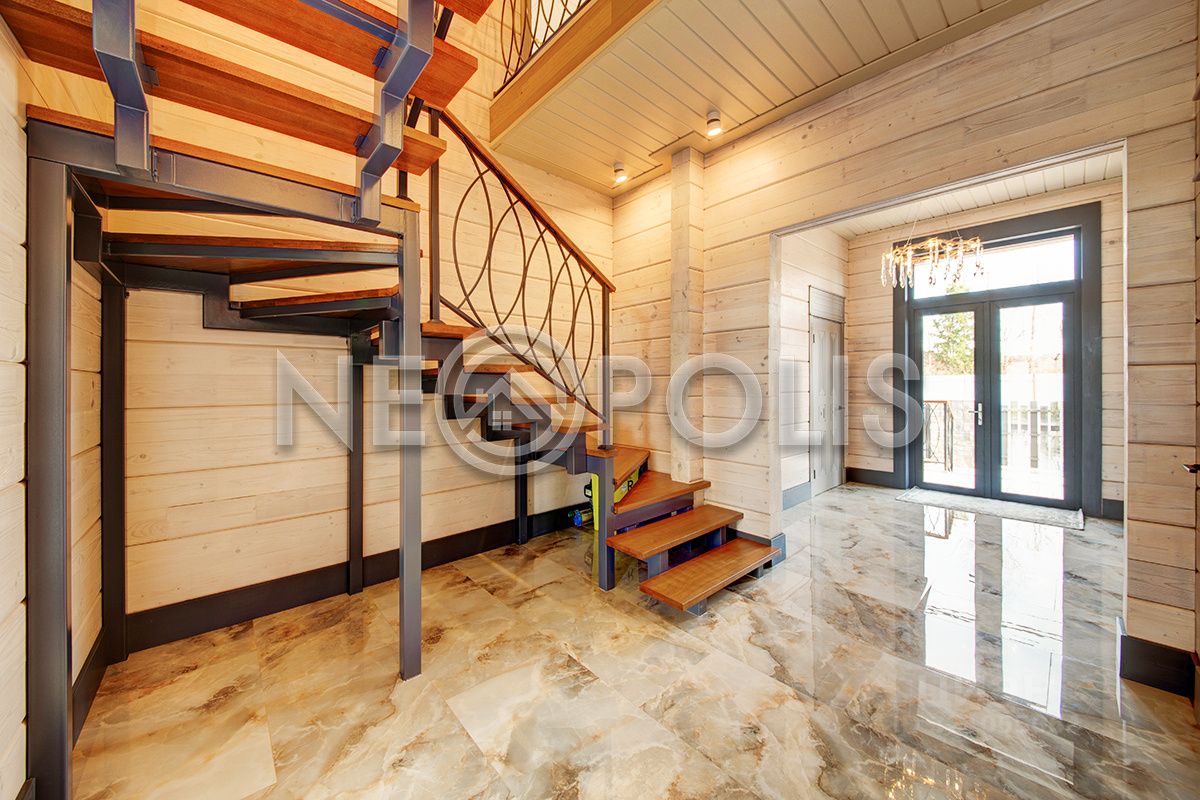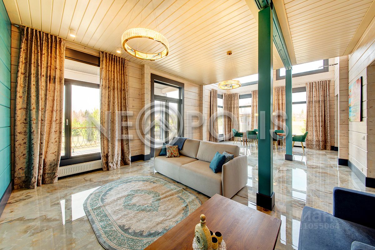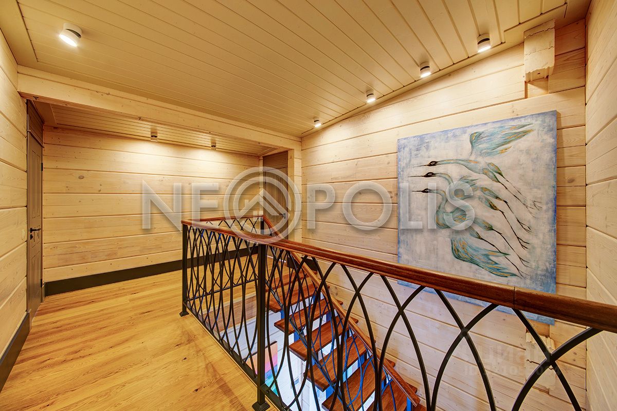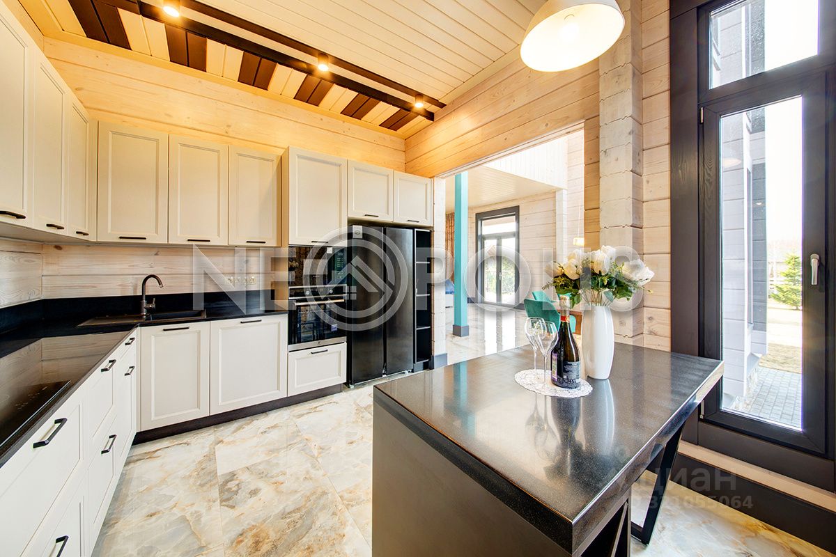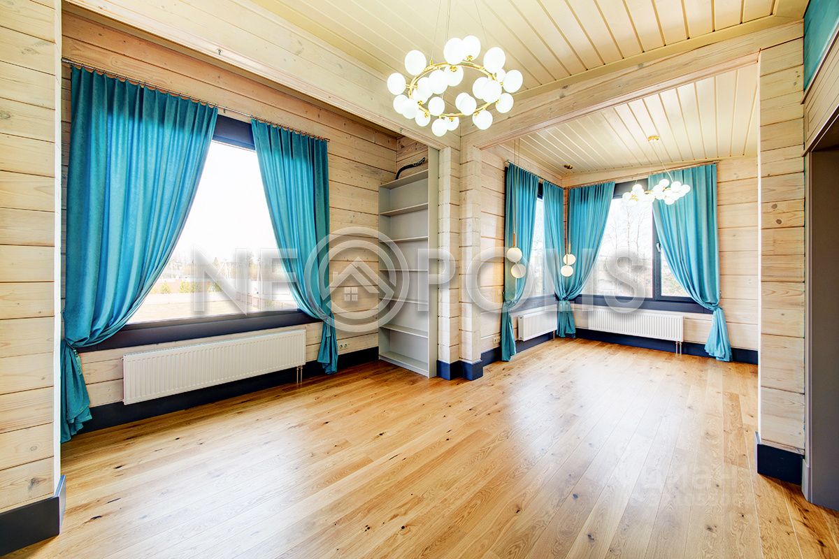 Клееный брус славится своей экологичностью. В отделке дома участвовал дизайнер, использованы дорогие и качественные отделочные материалы. Дом обставлен мебелью, есть встроенная кухня с бытовой техникой, спальные гарнитуры, сантехника, светильники и шторы.
