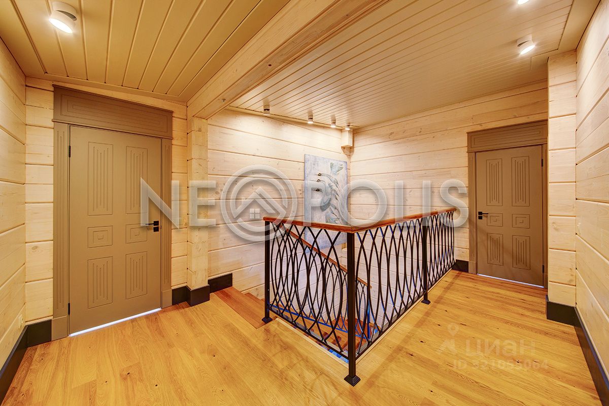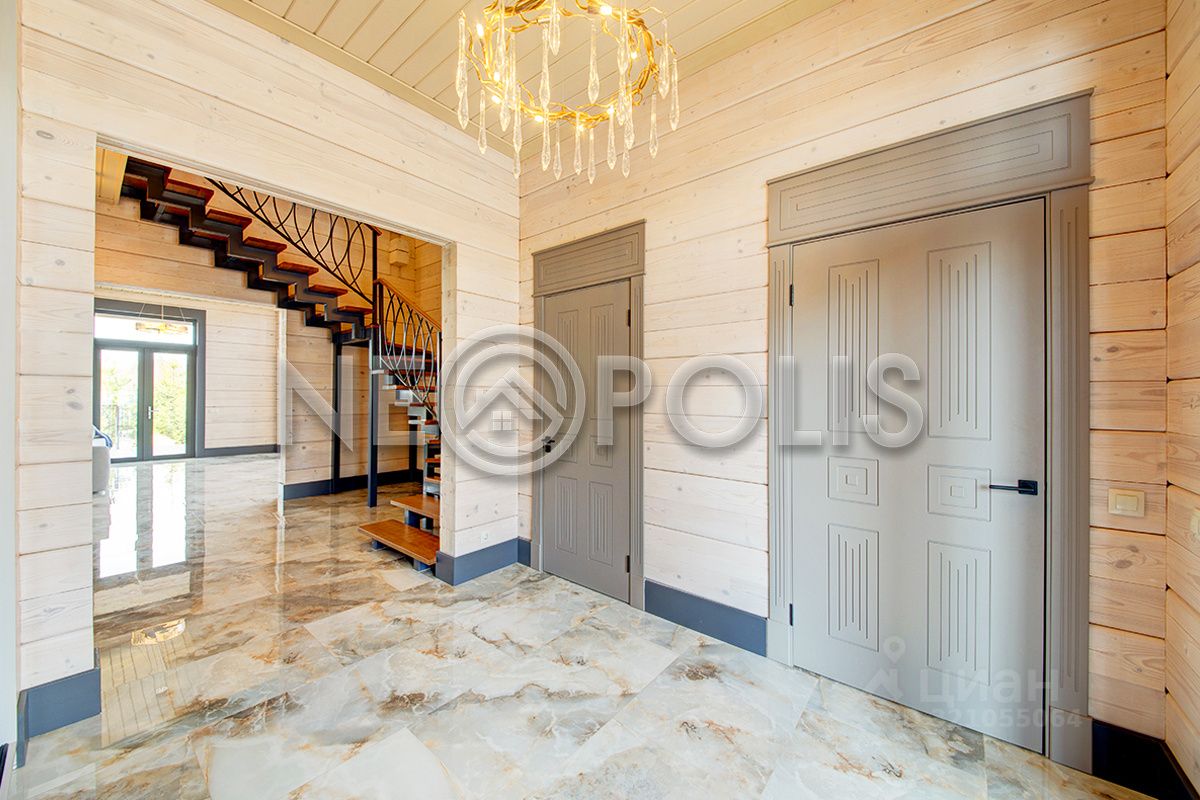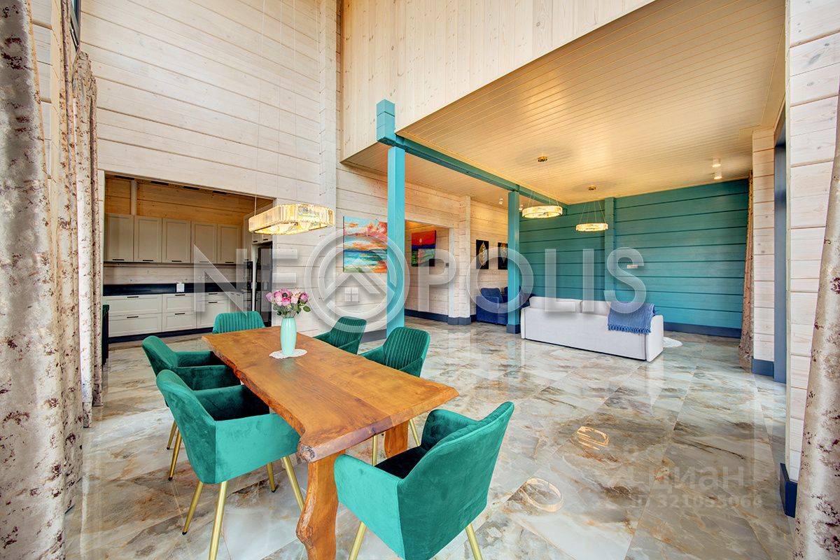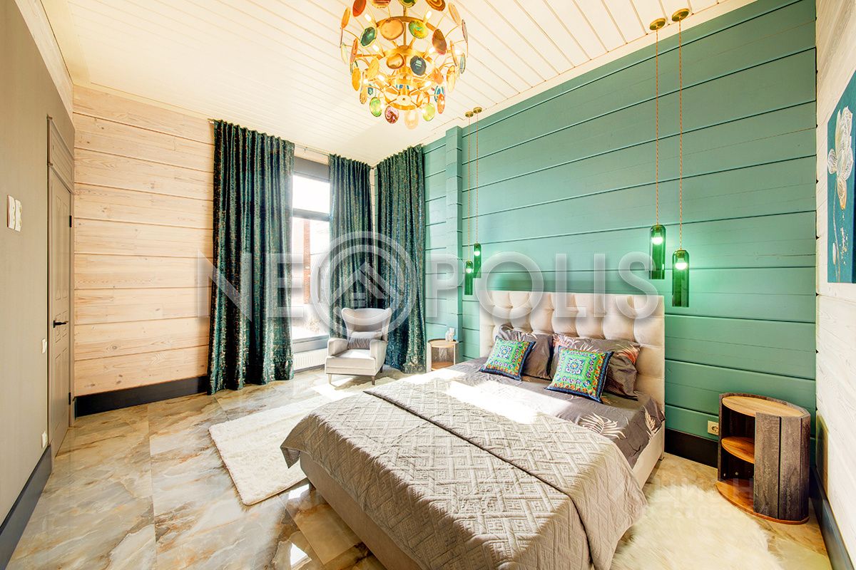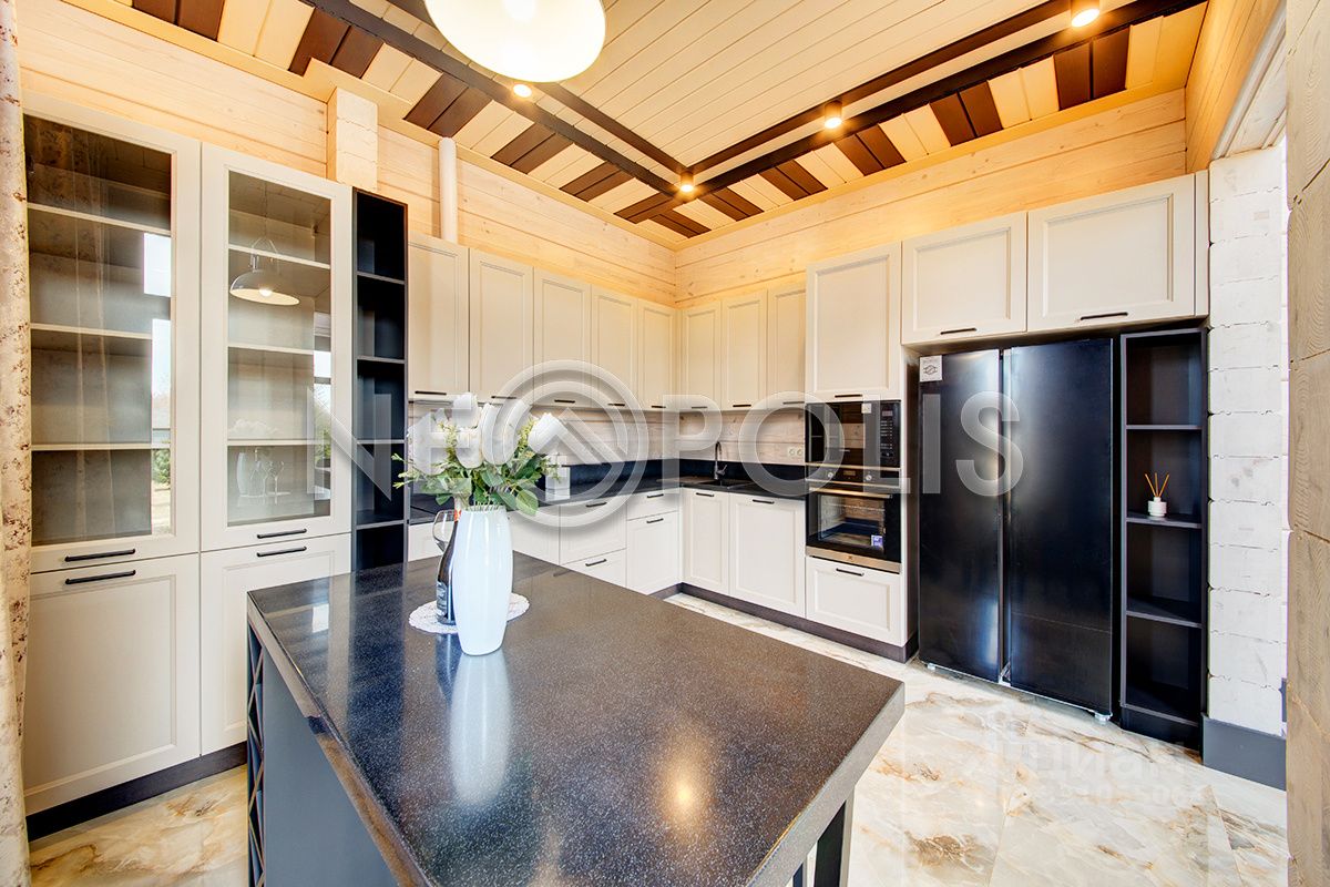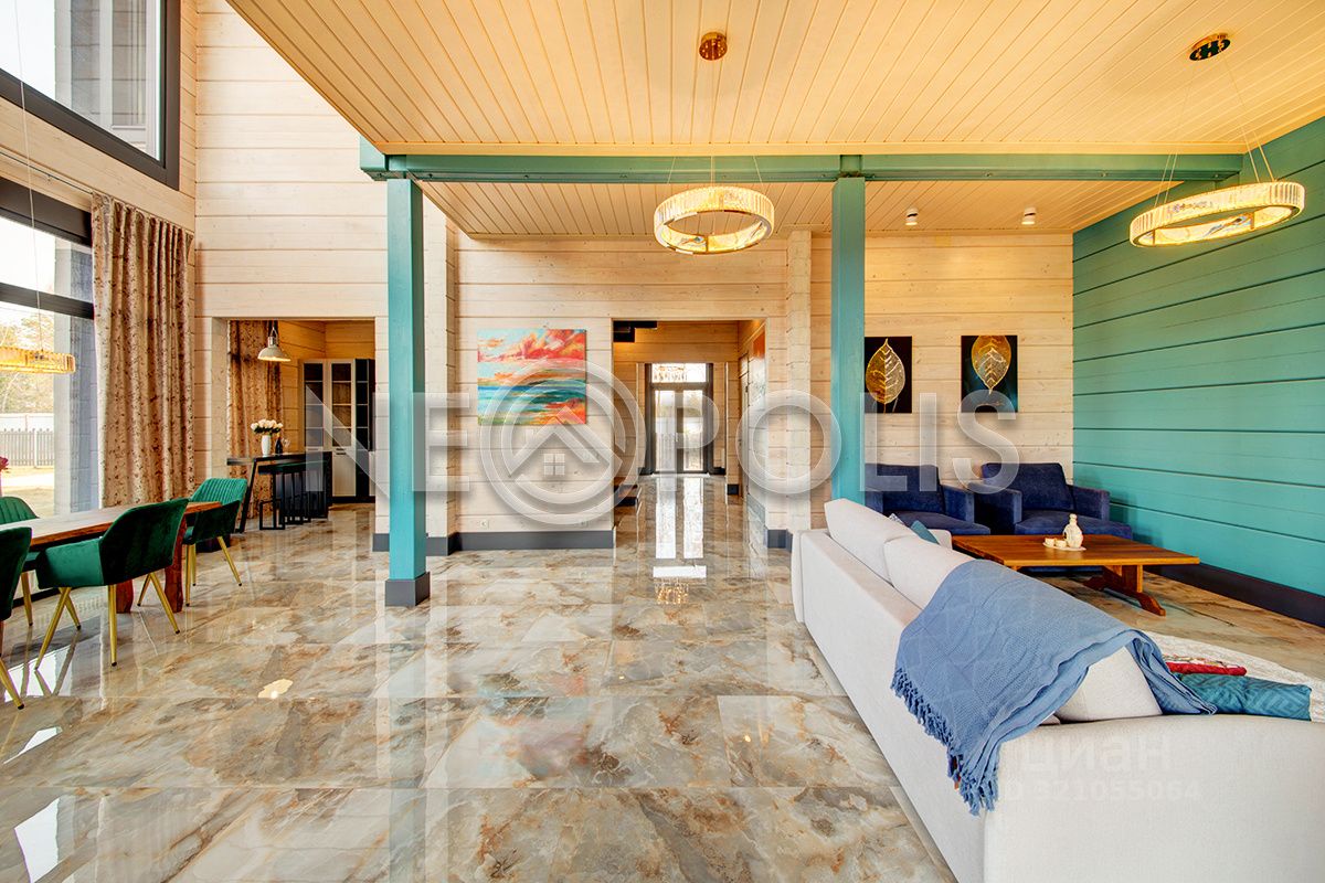 Клееный брус славится своей экологичностью. В отделке дома участвовал дизайнер, использованы дорогие и качественные отделочные материалы. Дом обставлен мебелью, есть встроенная кухня с бытовой техникой, спальные гарнитуры, сантехника, светильники и шторы.