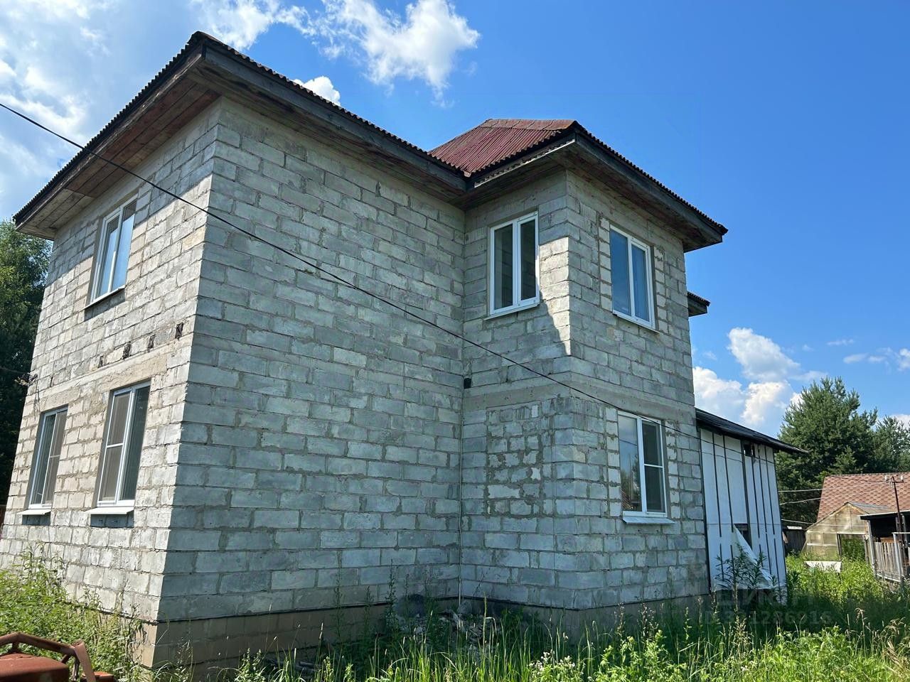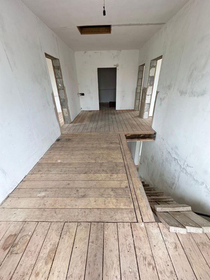 Электричество и вода заведены в дом, септик, отопление разведено (универсальный твердотопливный котел), окна ПВХ.