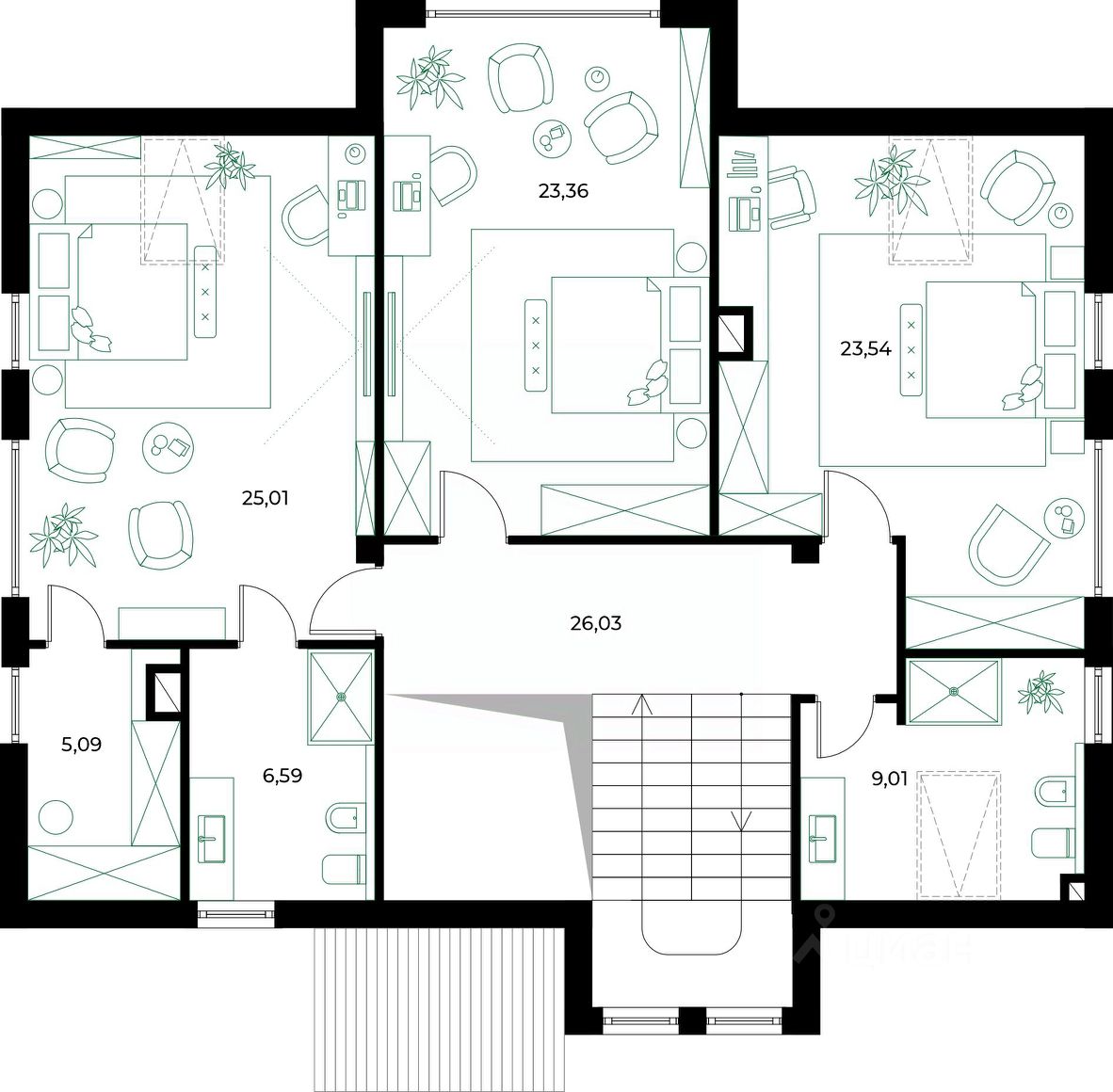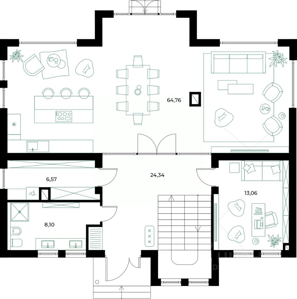 Просторная планировка, современные материалы и панорамные окна.