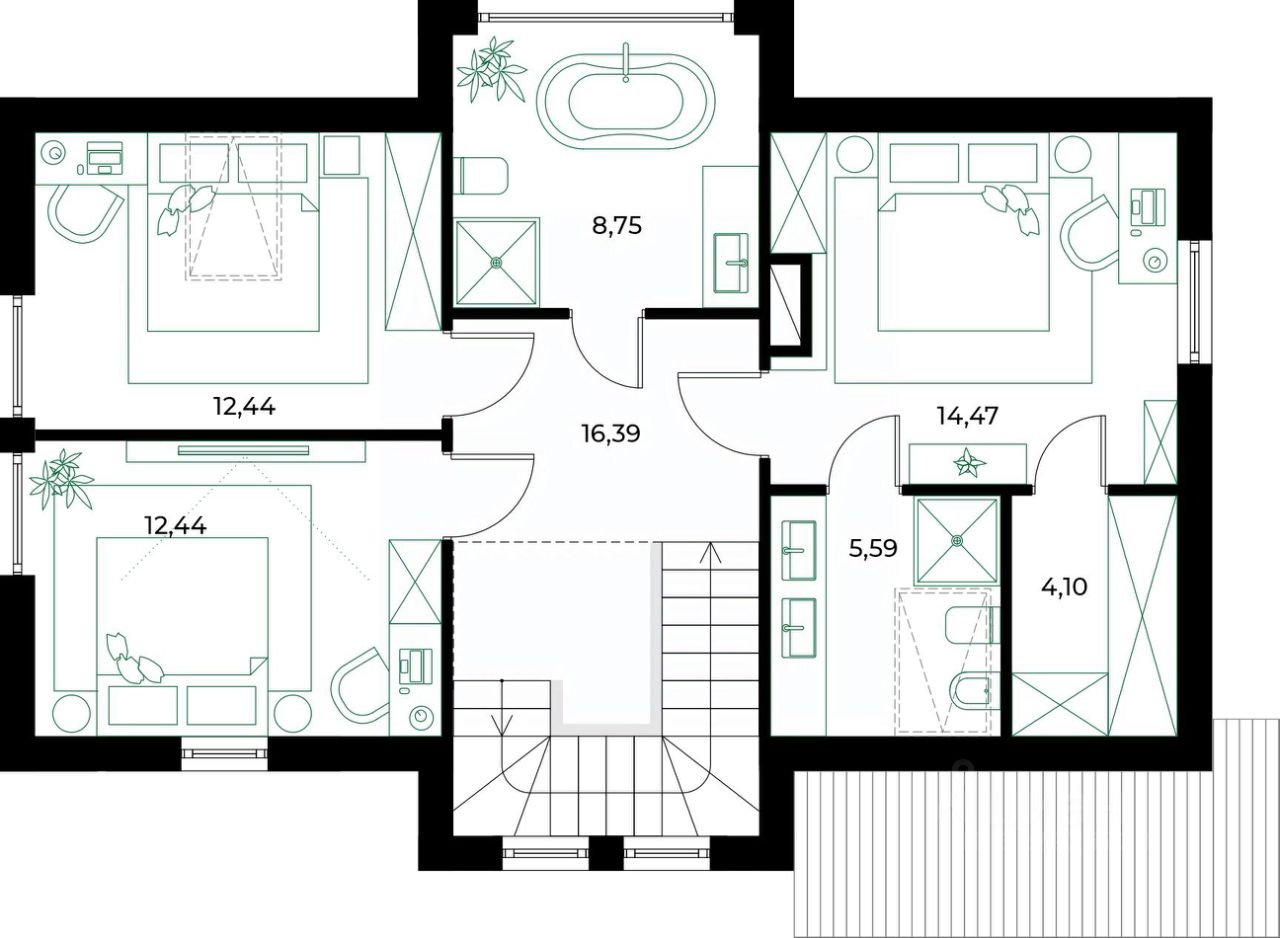 Просторная планировка, современные материалы и панорамные окна.